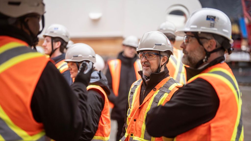 Nadir Guenfoud : « On installe les nouvelles composantes. Il y a 38 sections d’anneau technique, près de la moitié est déjà installée. Au printemps, on sera à l’étape d’assembler la nouvelle toiture au sol, puis on la soulèvera jusqu’à 60 mètres pour la suspendre. En 2027, on complétera la partie vitrée qui permettra de faire entrer la lumière naturelle. »